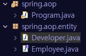 본격적으로 예제를 시작함에 앞서, 아래의 그림은 파일구조이고 Program은 실행파일, Employee는 인터페이스 Developer는 Employee를 구현하는 클래스이다.